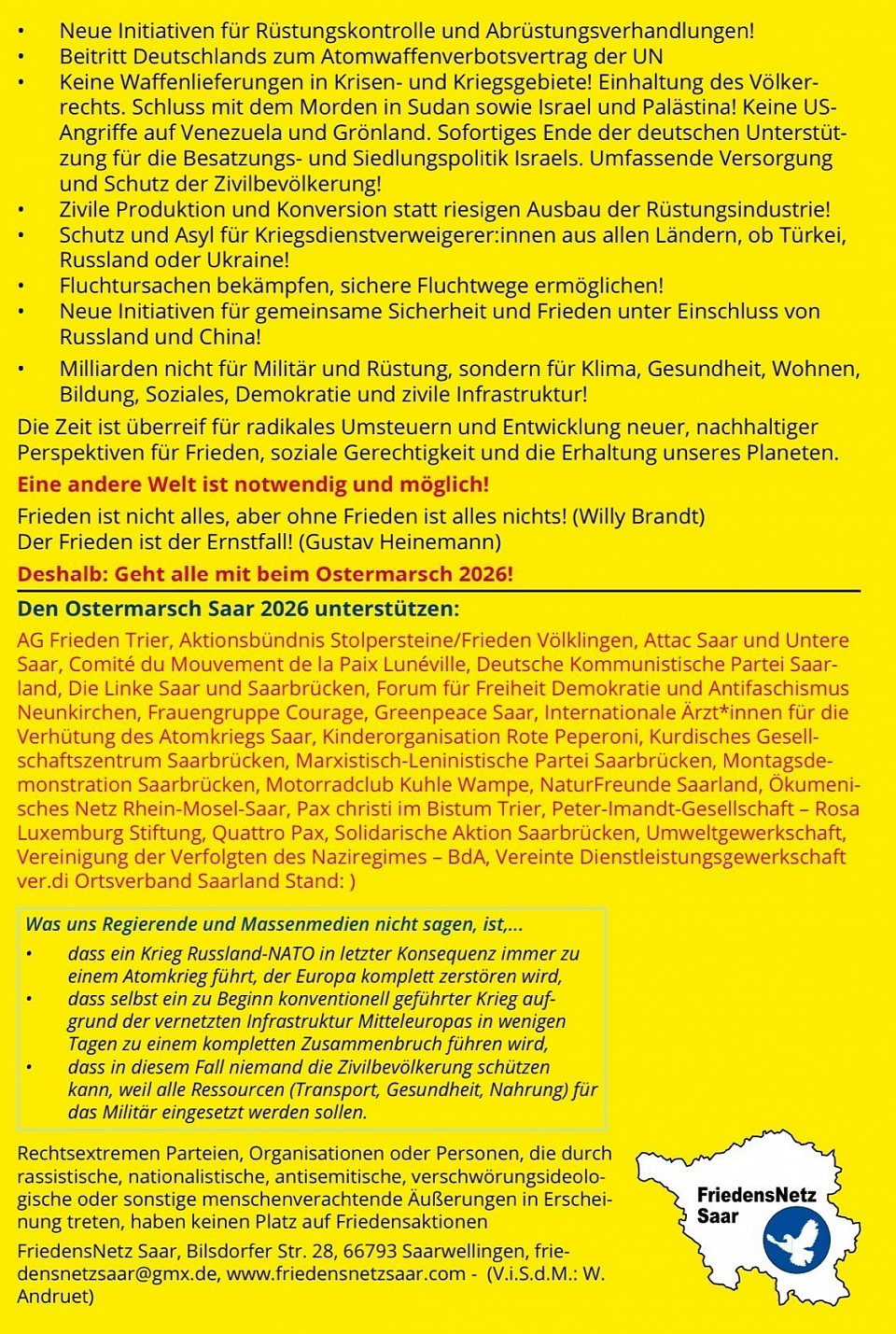 Ostermarsch 2025: Friedensfähig statt Kriegstüchtig